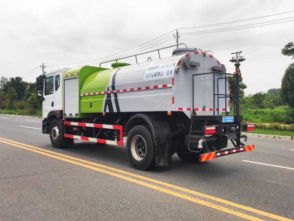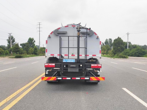 上裝容積 11 立方,罐體采用 Q235 優質碳鋼材質,鋁合金后平臺、鋁合金側防護,60-90 灑水水泵,全自動前沖、后灑、高炮,可在駕駛室一鍵操作灑水功能。高炮射程可達 35 米以上。