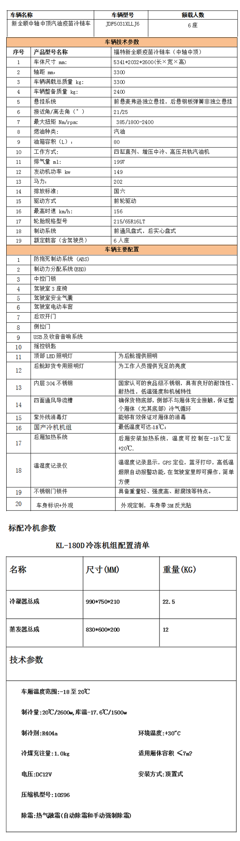 所屬型號藥品冷鏈車