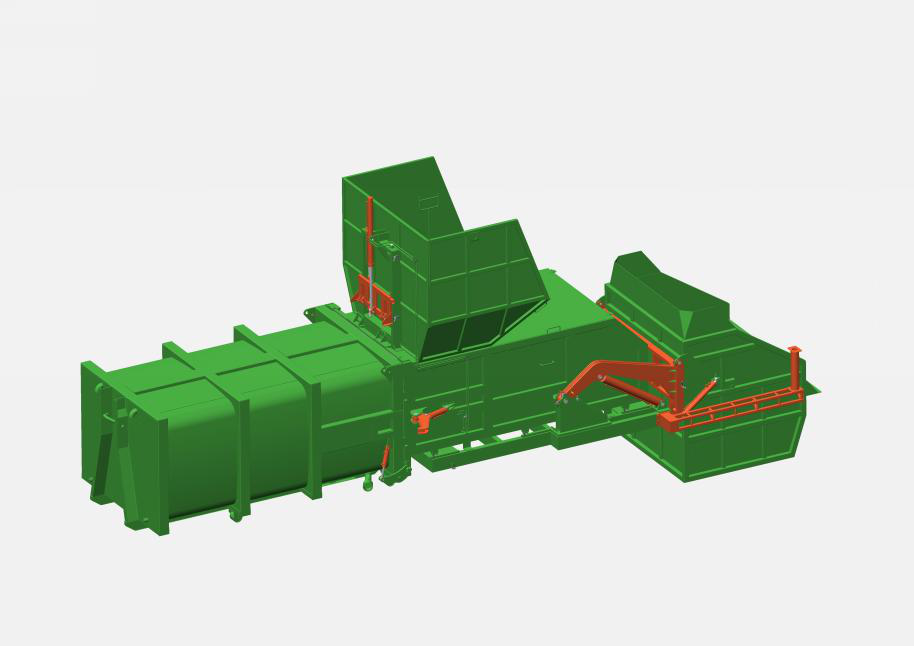 主機(jī)箱體包含:主機(jī)箱體、壓縮倉(cāng)、壓頭、壓縮油缸、滑輪、液壓系統(tǒng)、電控系統(tǒng)等組成。其主要結(jié)構(gòu)件采用Q345高強(qiáng)度結(jié)構(gòu)鋼焊接成成,具有較有的耐磨性;主機(jī)箱體上的滑輪與滑臺(tái)導(dǎo)軌配合,使主機(jī)能相對(duì)滑臺(tái)滑動(dòng),液壓電控系統(tǒng)固定安裝于主機(jī)箱體上,整體簡(jiǎn)潔美觀。箱體容積15m3,匹配16噸后雙橋車廂可卸式垃圾車。