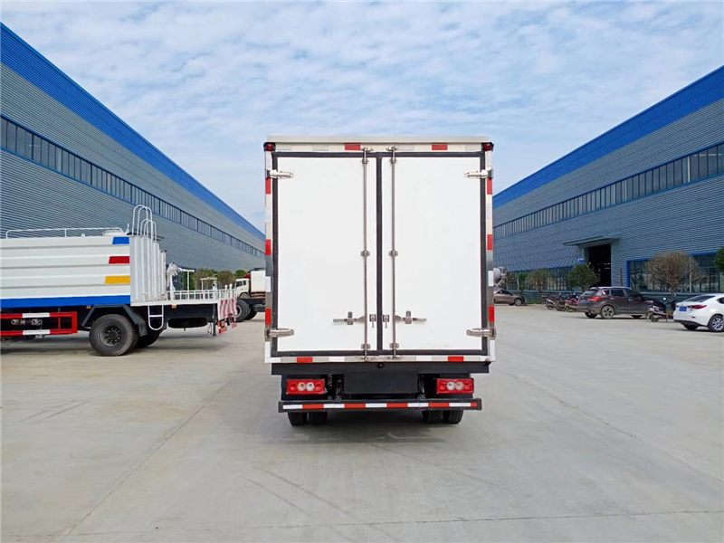 ,內襯骨架為防銹處理優質輕鋼型材鍍鋅管,保溫材料為無空隙填充聚氨酯發泡,廂體底部為鋁合金花紋板或選平面納米玻璃鋼,廂體采用鍍鋅不銹鋼包角,加厚型鋁合金包邊,后門框為不銹鋼,加厚型不銹鋼后門]合頁及鎖件,全車所有不銹鋼部位均使用食品級304不銹鋼制造,廂體內部采用ED照明燈及廂體示寬燈。